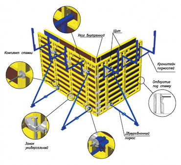 Стеновая опалубка, опалубка колонн, опалубка лифтовых шахт, опалубка перекрытий.